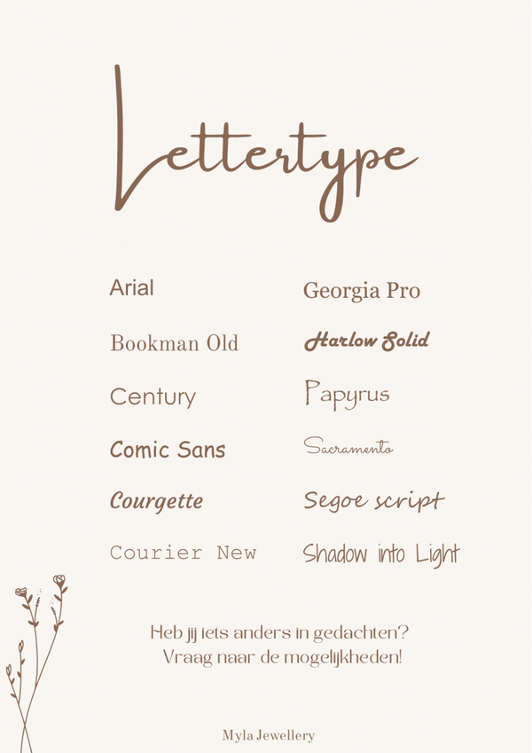 * Heb je er voor gekozen om een tekst op de achterkant te graveren? Vul jouw tekst en letterype in.