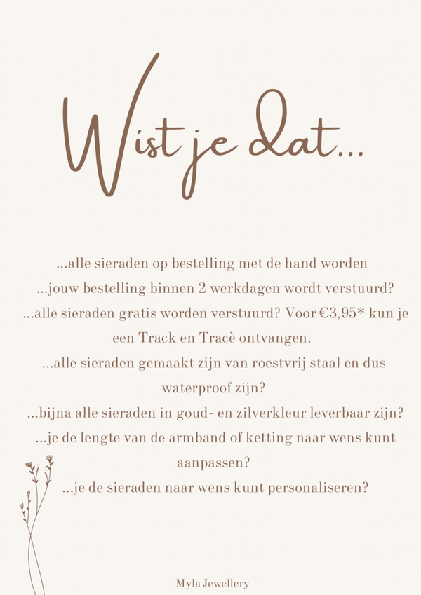 * Heb je gekozen voor 'andere lengte'? Dan kan je de lengte van de armband aanpassen tot max 60 CM.